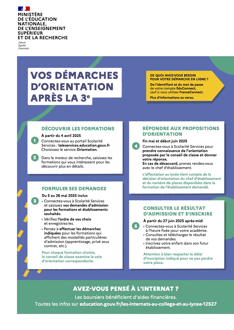 le mercredi 27 juin 2025 : publication des résultats de l’affectation et début des inscriptions en lycée.